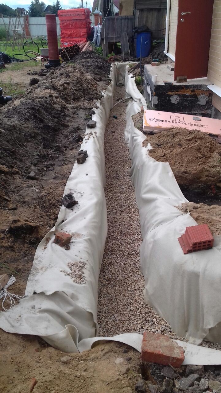 Подготовка грунта: перед установкой системы дренажа необходимо подготовить грунт. Это может включать удаление растительности и верхнего слоя почвы, чтобы обеспечить хорошую дренажную проходимость. Также могут потребоваться работы по выравниванию участка и созданию наклонов для эффективного стока воды.
