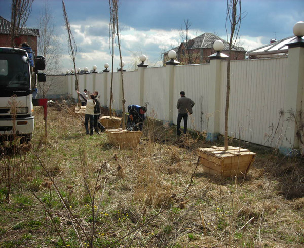 - подготовка посадочных ям и посадка деревьев,